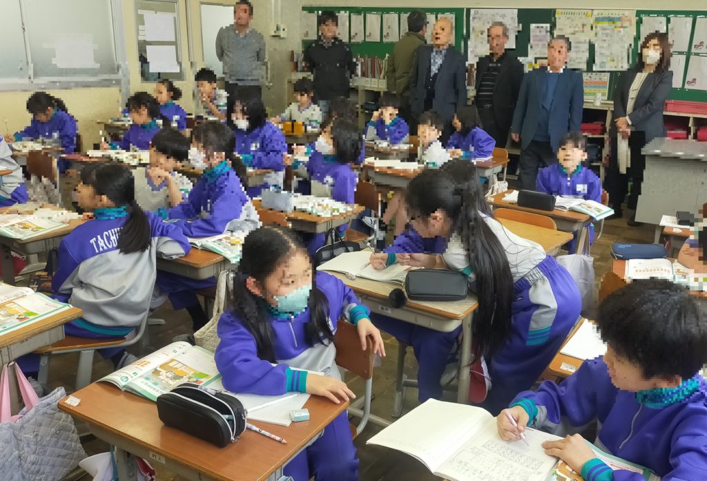 家庭・地域・学校協議会 19 2月,2026 立待小学校編集者 「家庭・地域・学校協議会」とは、家庭、地域、学校のそれぞれの代表の皆様に年3回お集まりいただき開催しているもので、地域の特性や実情を生かした地域に根ざした学校づくりを目指し協議していただいています。 会に先立ち、委員の皆様に学校の様子をご覧いただきました。これは4年生の国語「調べて話そう、生活調査隊」の学習の様子を見てもらっているところです。 3年生の算数「掛け算のひっ算」を学習しているところを見てもらっています。 5年生家庭科「ミシン(エプロンづくり)」を学習しているところを見てもらっています。 2年生体育「ダンス」を見てもらっているところです。