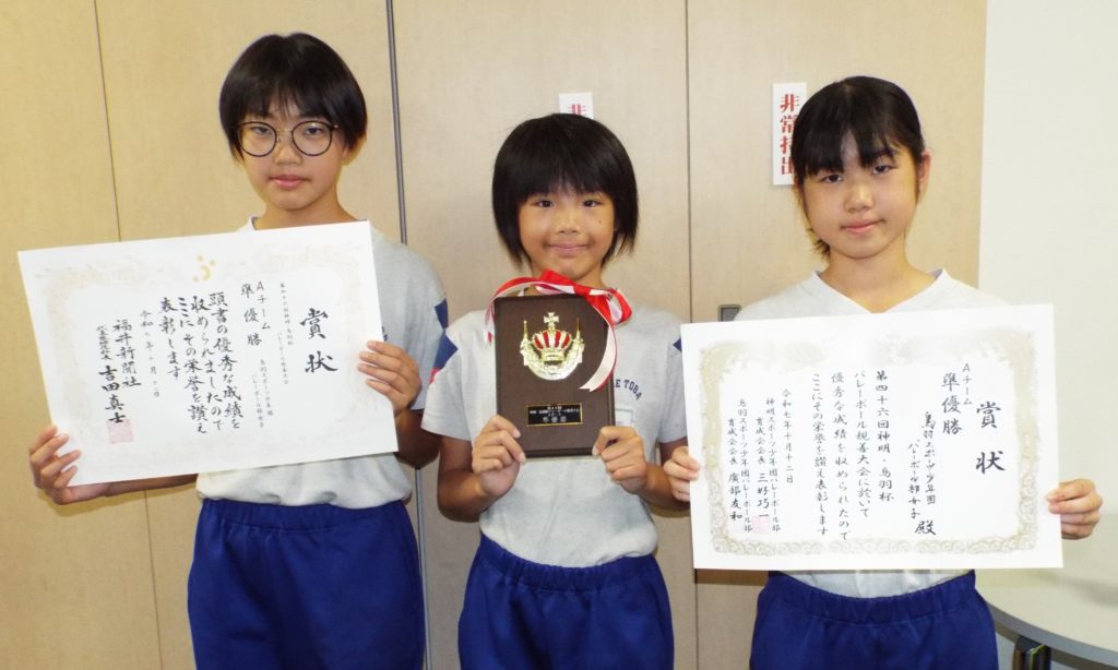 この大会で、鳥羽地区スポーツ少年団 女子バレーボールチームは、予選を通過し、見事、準優勝を果たしました。