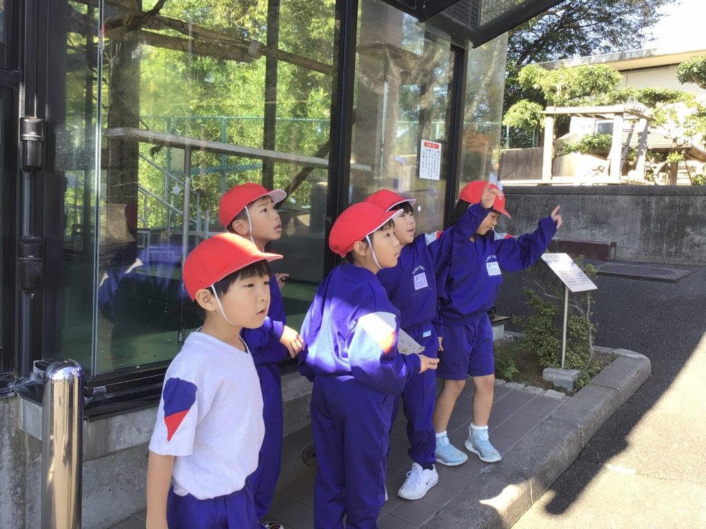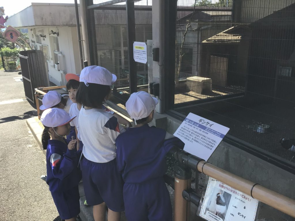 西山動物園では、飼育員さんのお話を聞いた後、動物クイズをしました。寝ているレッサーパンダを見て、「かわいい。」とうれしそうでした。