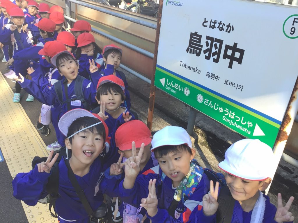 西山公園へ電車に乗っていきました。電車は行きも帰りもレッサーパンダ号でした。初めて電車に乗った子もいましたが、ルールを守って安全に乗れました。