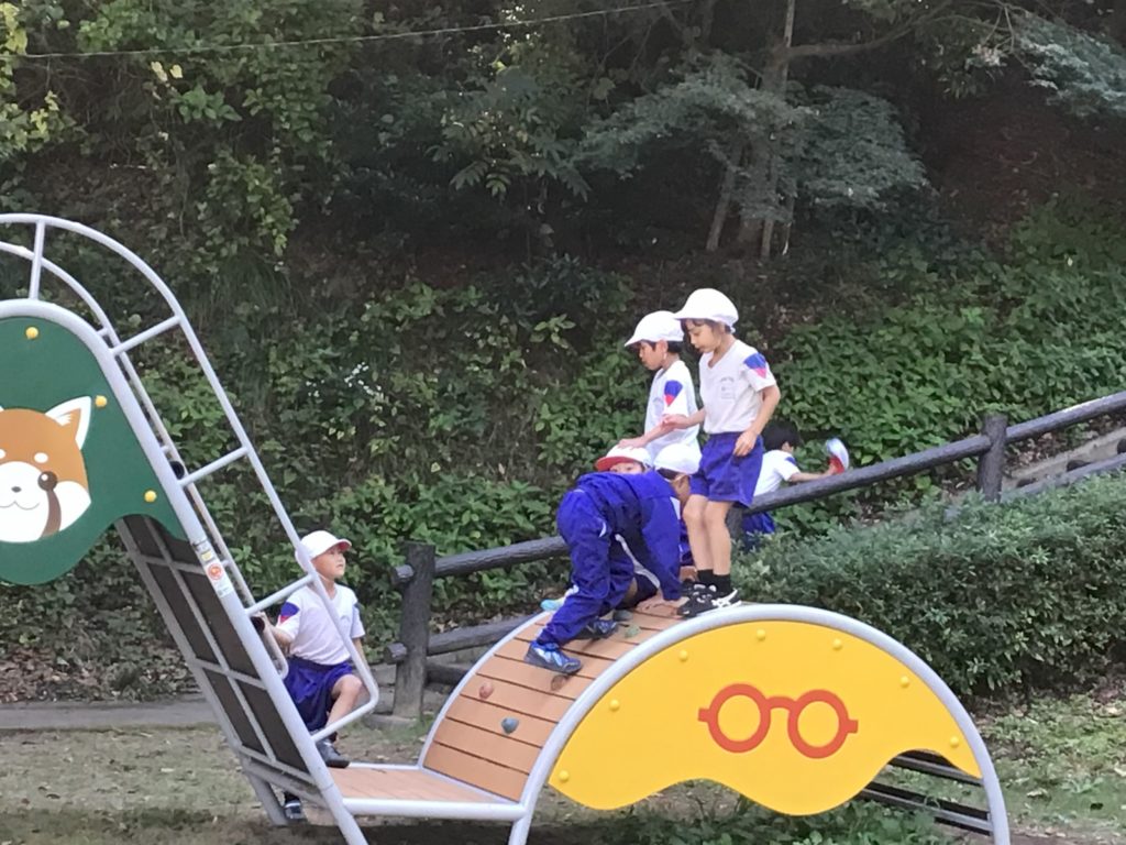 お昼は芝生広場に行き、みんなでお弁当を食べました。「おなかすいた~。」と、おいしいお弁当に大喜びでした。午後は、パンダランドで秋さがしをしたり遊具で遊んだりしました。天気に恵まれ、とても楽しい一日になりました。