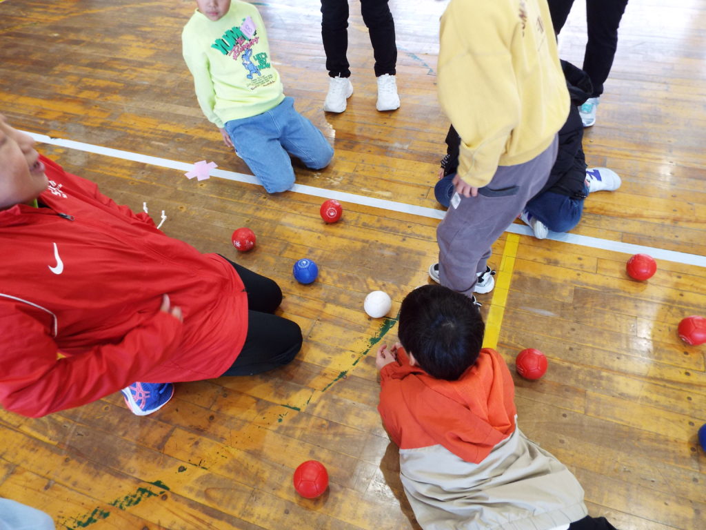 ①モルック、②輪投げ、③スカットボール、④ボッチャを体験しました。