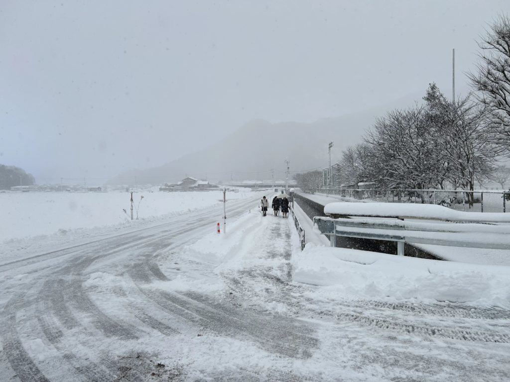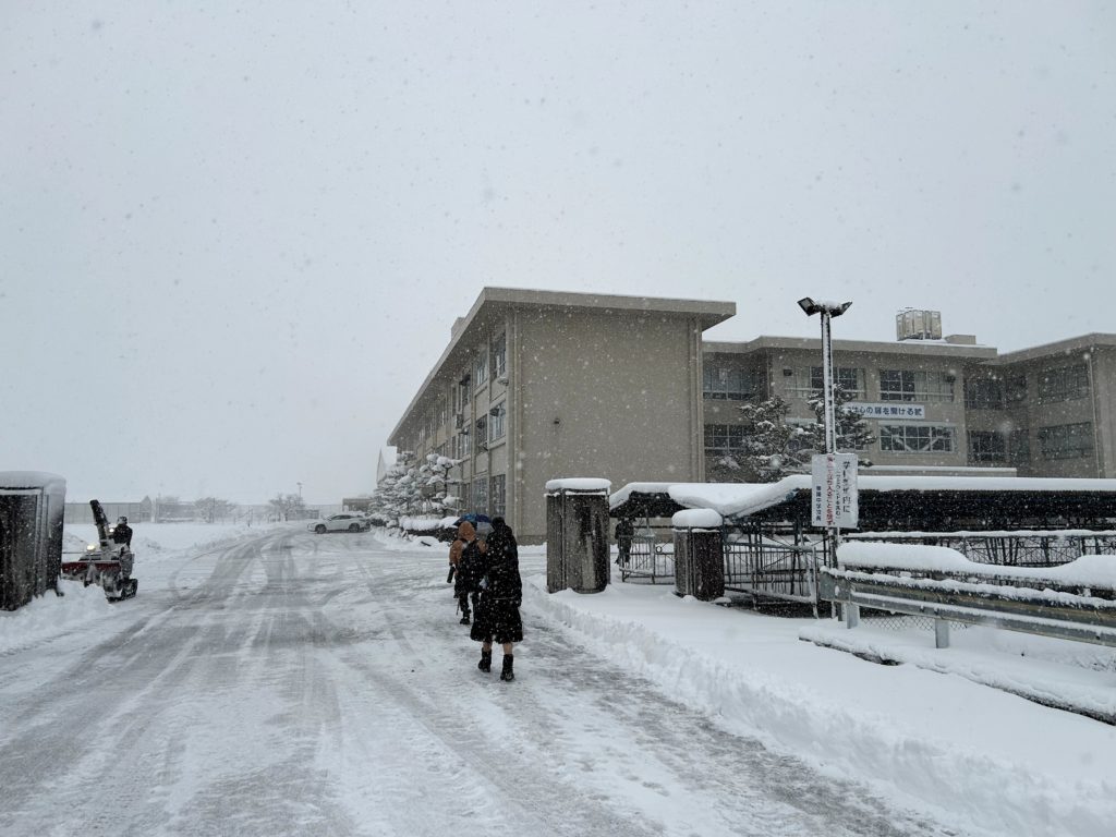 昨晩から降り続いた雪が積もり、通学にはとても大変な朝となりました。