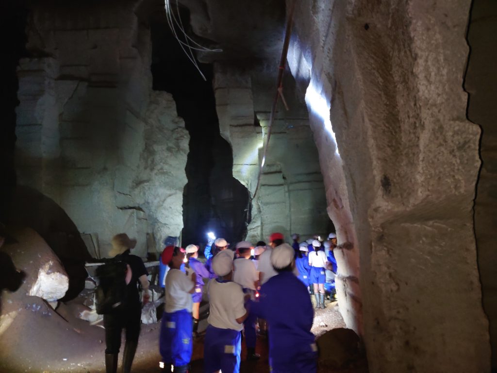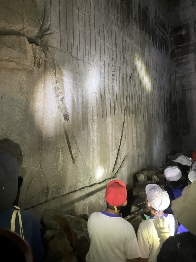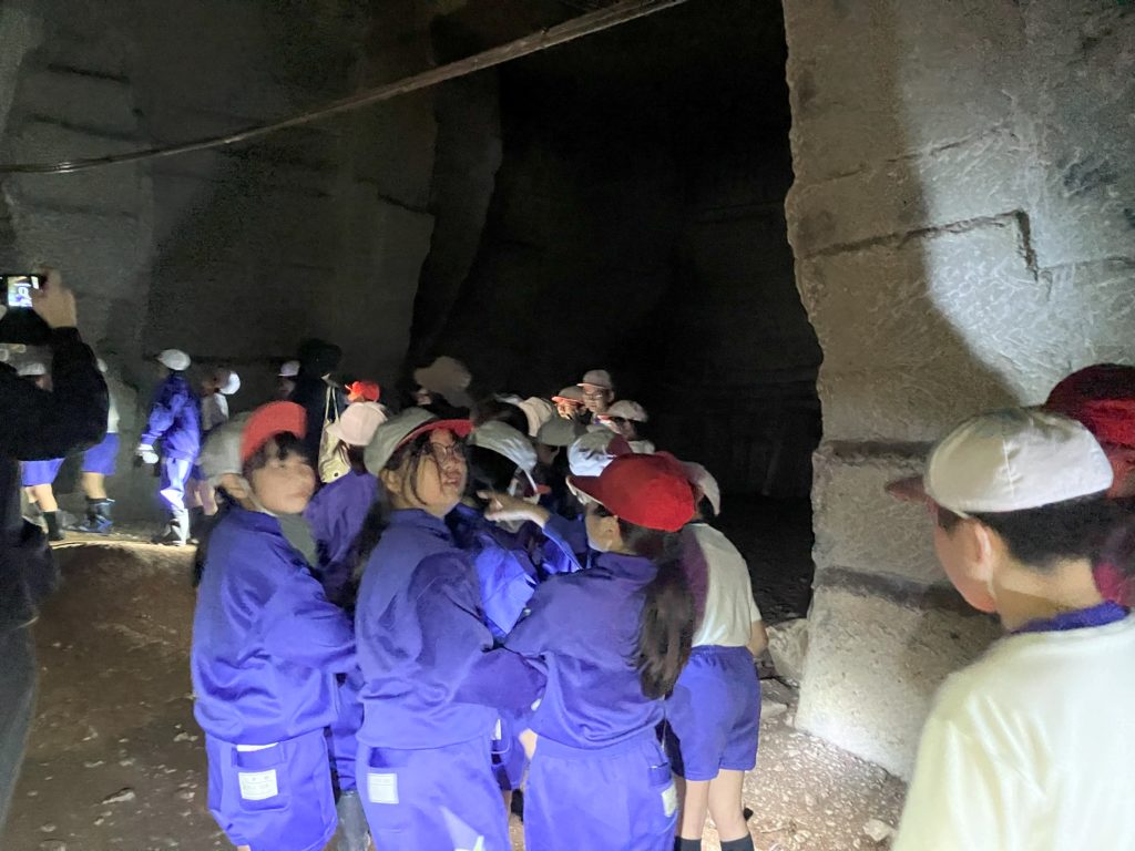 4年生が和田町の石間歩へ出かけました。地域の方(舘さん)から石間歩について詳しく教えていただいてから、石間歩の中を見学しました。昔、採石した跡を見ながら、昔の人の仕事の様子を想像しました。山道を整備してくださった地域の方々、ありがとうございました。