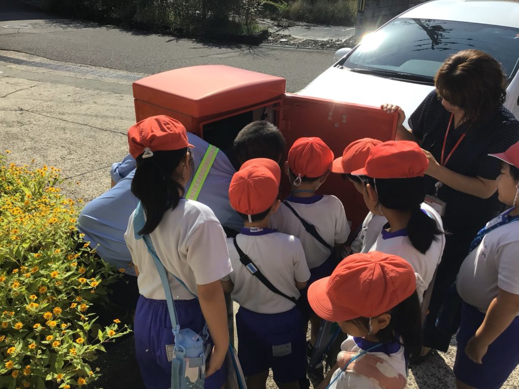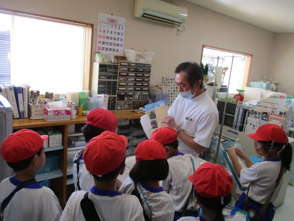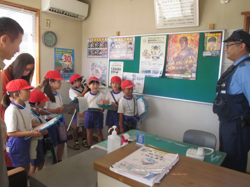 2年生が町たんけんに出かけました。駐在所や伍代工務店、のろ動物病院など、4グループに分かれて、8つの場所を探検させていただきました。詳しいお話を聞かせていただいたり、質問に答えていただいたり、そこにあるものを見せていただいたりすることで、新しい発見がたくさんありました。お世話になった地域の方々、ありがとうございました。
