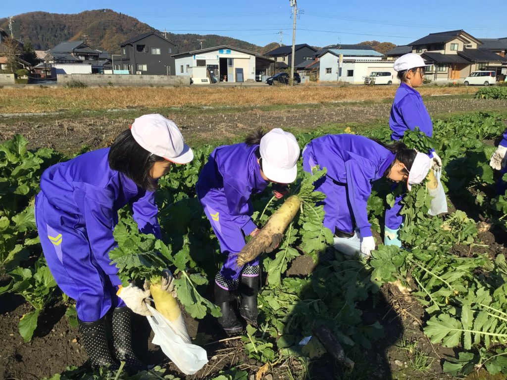 5年生がサルビア会のみなさんに手伝っていただきながら、大根を収穫しました。まるまると太った大きな大根がたくさん収穫できました。これからの給食でいただきます。サルビア会のみなさん、ありがとうございました。