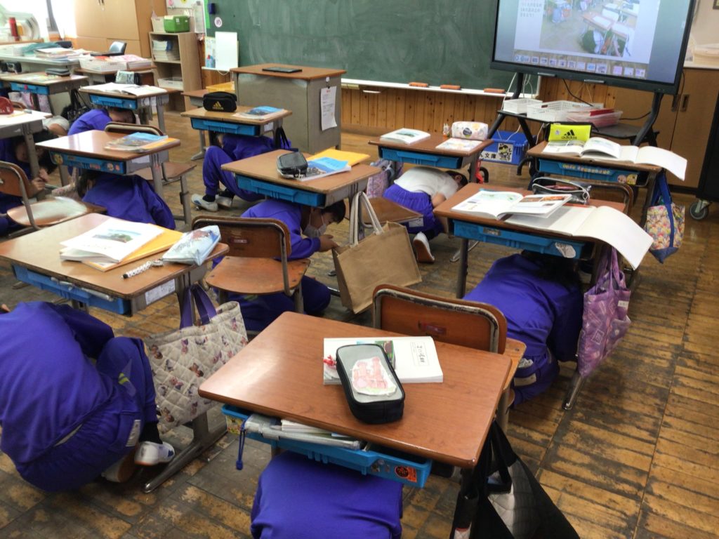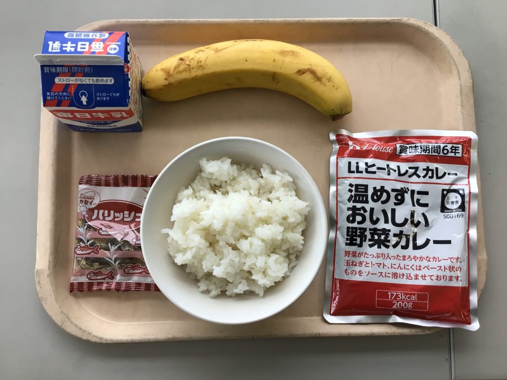 日本は地震が多い国なので、「大きな地震が起きたら」を想定しました。今までに起きた地震による大きな被害について学び、自分の命を守るために「シェイクアウト」を体験しました。その後、防災食として、レトルトカレーやバナナの防災食をいただきました。