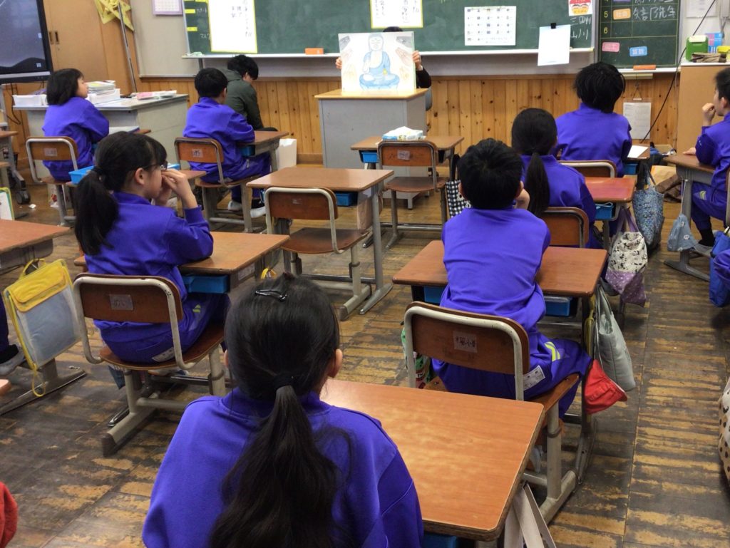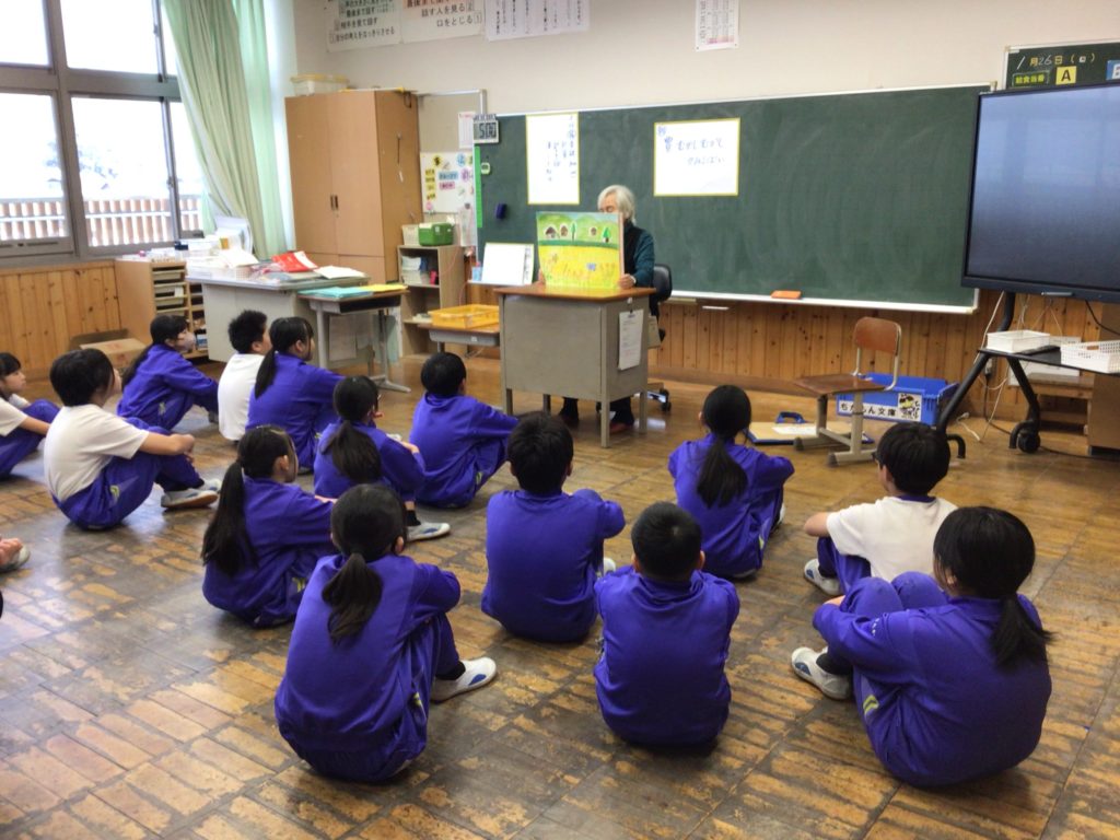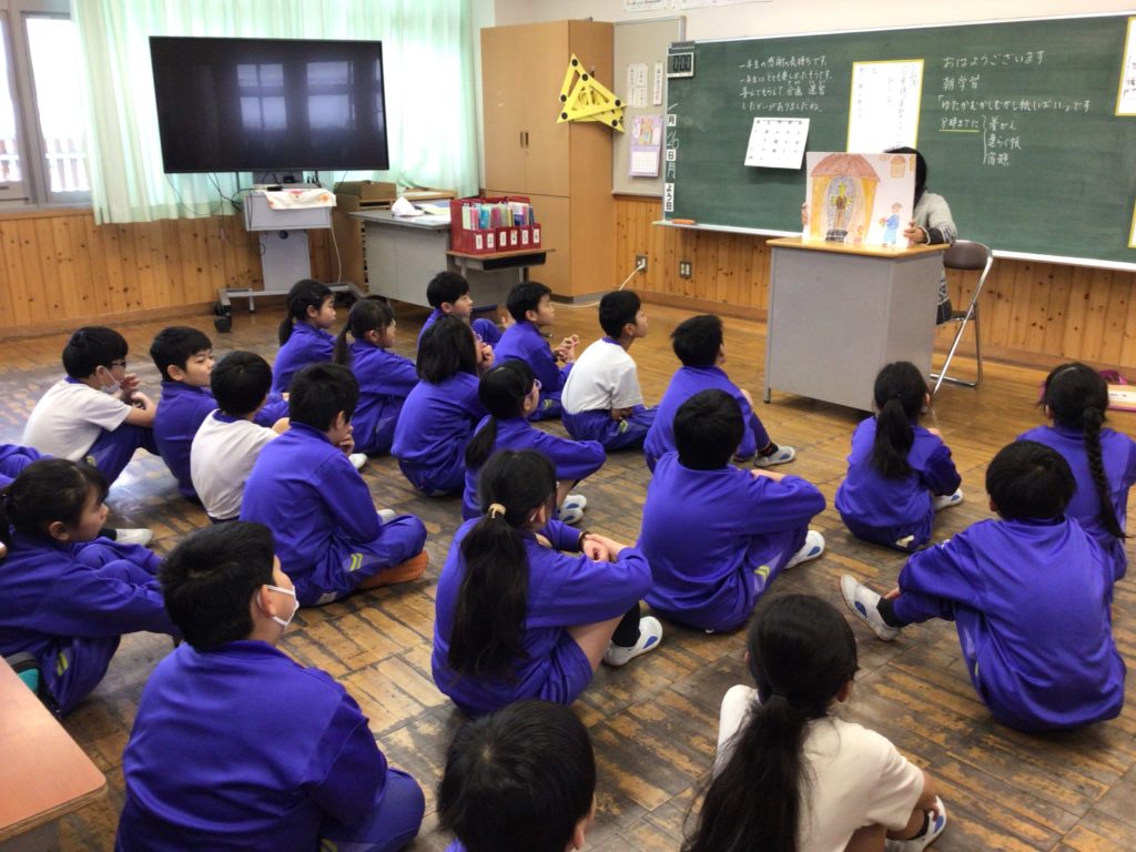3,4年生は、地域の方に、豊地区に伝わるお話を紙芝居で教えていただきました。毎年、学期に1回ずつ、お話を聞かせていただいていますが、同じお話はありません。たくさんの言い伝えが残る素晴らしい地区ですね。