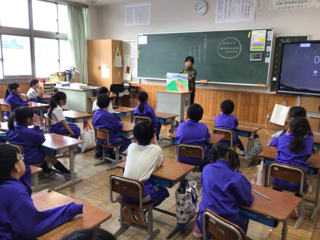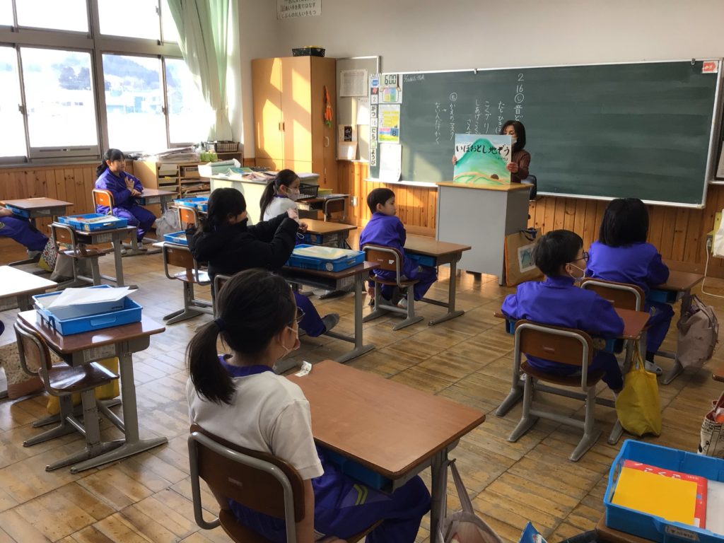 1,2年生は、地域の方に来ていただいて、豊地区にまつわる話の紙芝居を見せてもらいました。今年度は、今回が最後でしたが、「豊地区には紙芝居になっていない話がまだあり、作成を進めているので、これから伝えられるようにしたい。」と、おっしゃっていただき、令和8年度のスタートを楽しみに待ちたいと思います。