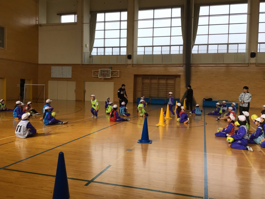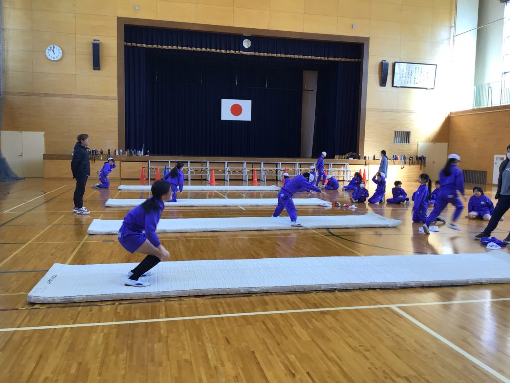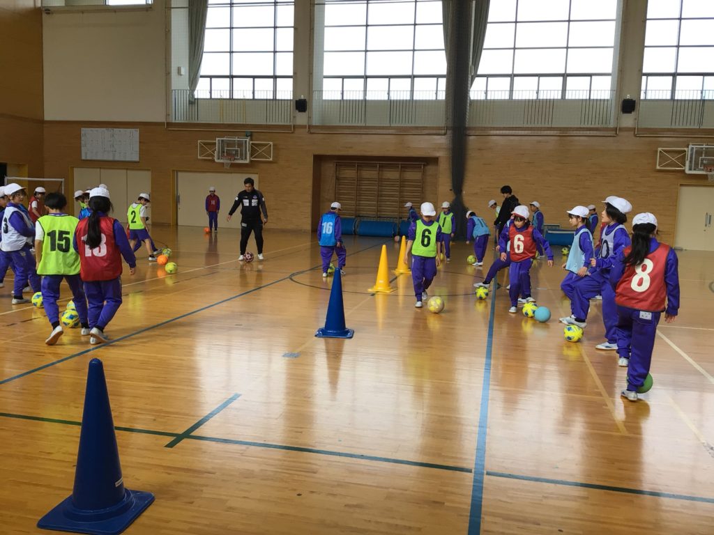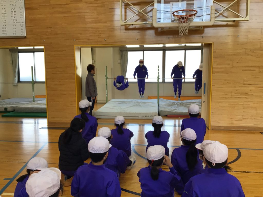 4,5年生は、体育の専門の先生に来ていただいて、授業を受けました。4年生はボール運動で、一人1個のボールを蹴ったり止めたりしながら、ゲームに使う動きを練習しました。5年生は器械運動で、マットや鉄棒の技を1つずつ丁寧に練習しました。