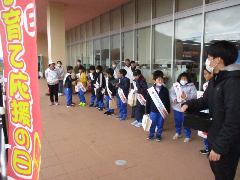 4年生が地域の量販店で街頭募金活動をしました。来店する方々に大きな声で募金を呼びかけることができました。足を止めてご協力くださった方に、笑顔で感謝の気持ちを伝える姿もみられました。 |