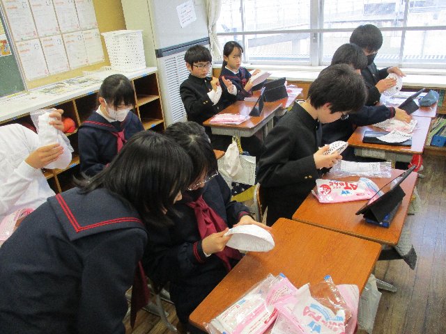 中河祭で使うお面作りを全員が行っていました。 中河祭は1月29日(木)に予定されています。昨年と同様に、6年生が模擬店を開き、そこに1~5年生を招待します。お面はその模擬店で利用するもので、今日は土台に紙粘土を貼っていました。さて、それぞれどんなお面になるのでしょうか。