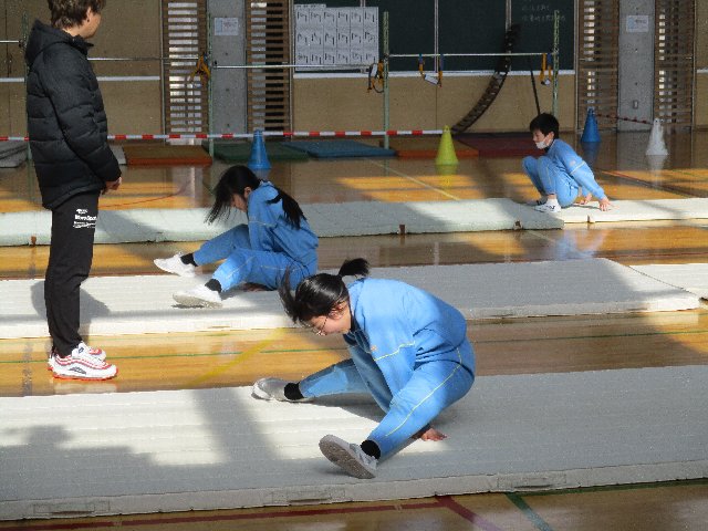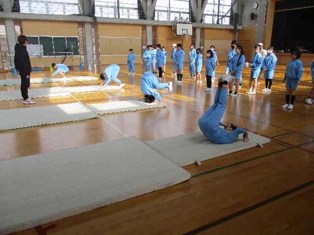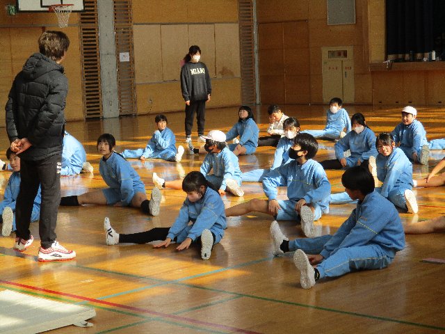 体育大好き支援事業として、外部講師をお招きしてマット運動を習いました。 6年生ともなると体力がついて、走ったり跳んだりする力は小さい頃より各段に伸びています。けれども、体が大きくなった分、柔軟性がなくなっている子も多く、マット運動は苦手な様子が見られました。外部講師の方は、どうすればスムーズに回れるかを丁寧に教えてくれました。