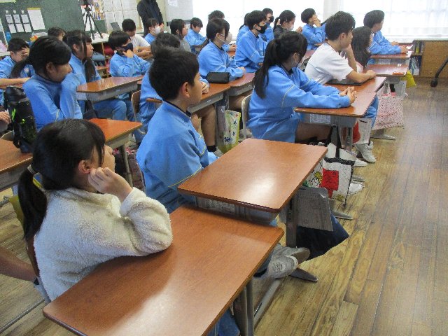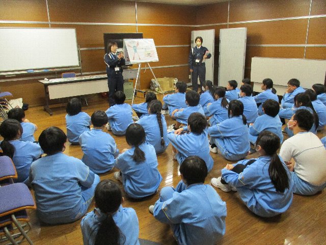 鯖江警察署 生活安全課から講師をお招きして、ひまわり教室を開催しました。 最初に、SNSに潜む危険性やネットゲームに関する問題についてのお話を聞きました。その後で、万引きや自転車どろぼうなどの犯罪に関するDVDを視聴しました。6年生にとって身近な問題なので、みんな真剣に話を聞いていました。今日学んだことを忘れずに、健全で安全な生活を送ってください。