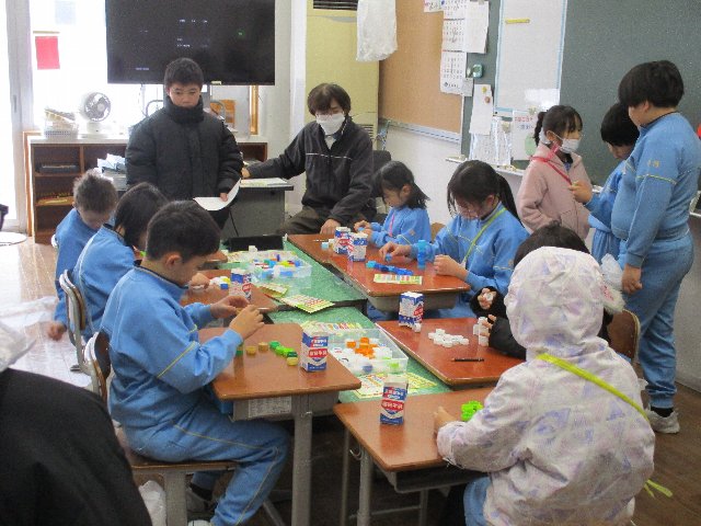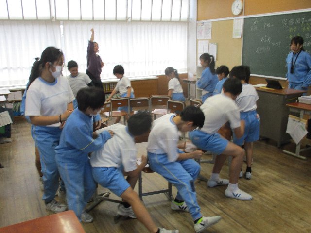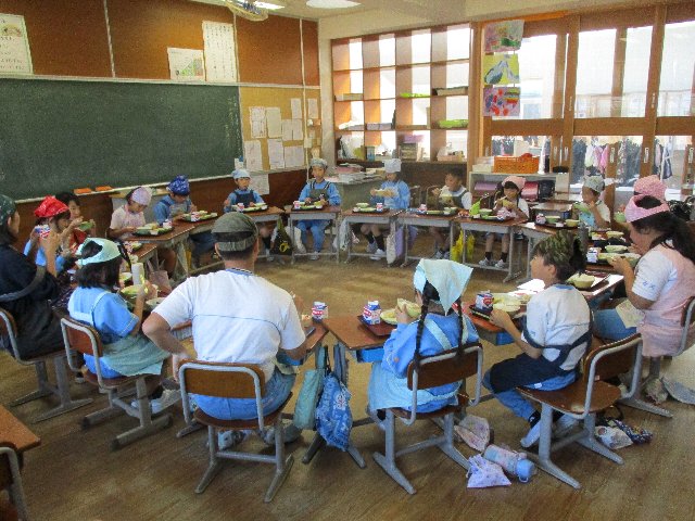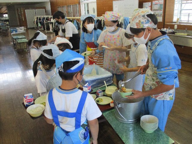今日は、たてわり班給食(遊び)が行われました。 これは、たてわり班ごとに集まって給食を食べるもので、配膳などの準備は5・6年生が行いました。食べているときには他学年の子同士で会話をする姿も見られました。食後に6年生から修学旅行についての発表があり、最後に6年生が考えた遊びで楽しみました。『イスとりゲーム』や『シルエットクイズ』など色々な遊びで、どの班も盛り上がっていました。