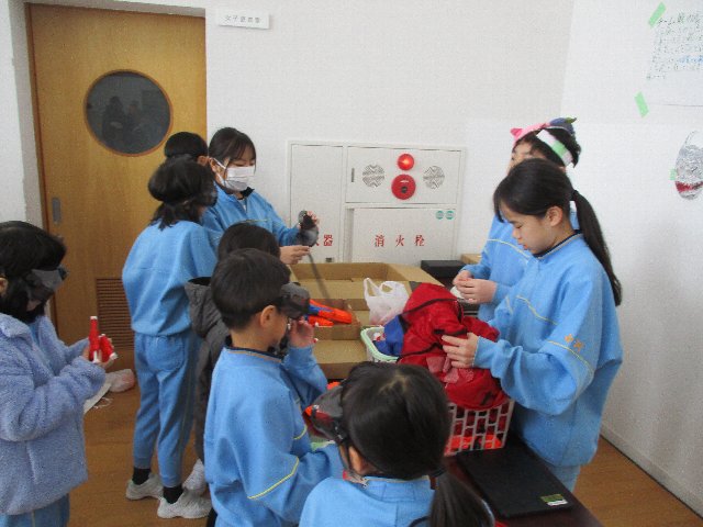 今日は、地震から火災が発生したという想定で避難訓練が行われました。その後に、6年生は消火体験を行いました。 最初に消防署の方から消火器の使い方の説明がありました。その話の中で、「あせってしまい消火器を火の中に放り込んだ人もいる。」ということを聞きました。その話を聞き、もしもの場合でもあせってはいけないと、子ども達は心に刻んだようでした。