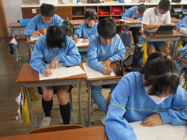 担任の幸道先生からテストを返してもらっている様子です。 今日は、国語、漢字、英語、理科のテストを返してもらっていました。1教科ずつ返してもらうたびに、喜びの声や悲しみの声があがっていました。幸道先生によると全体的に理科の出来が悪かったようです。皆さん、しっかりと復習をしておきましょう。