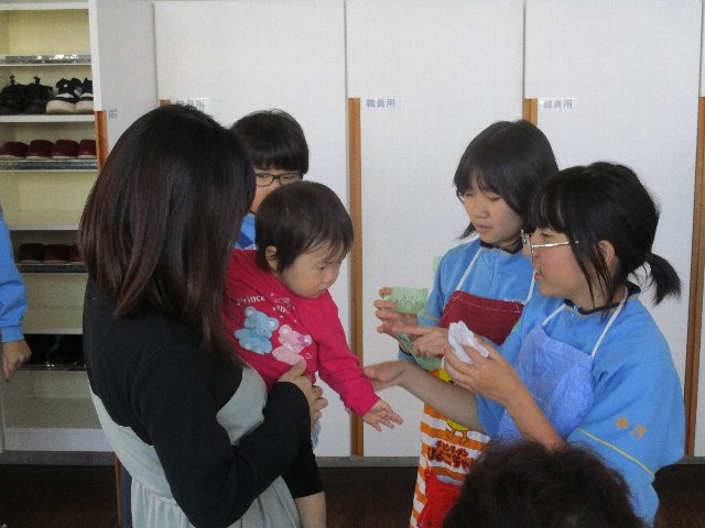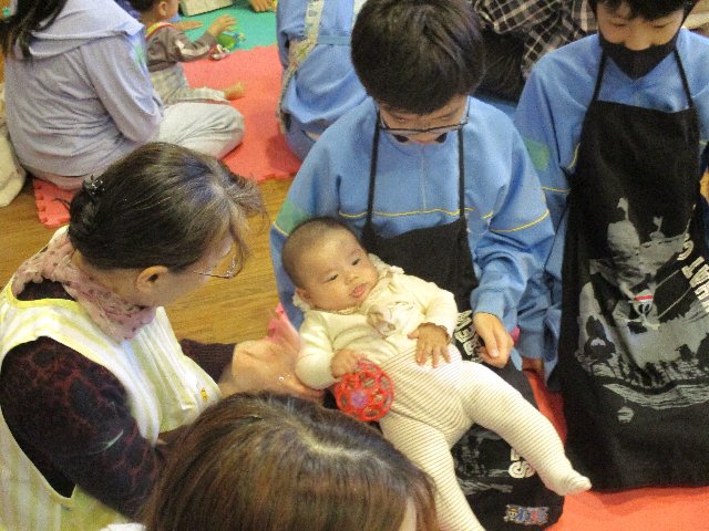 コロナのために実施できなかった赤ちゃん抱っこ体験が久しぶりに行われました。 まず玄関でお出迎えをしたのですが、赤ちゃんがくるたびに「かわいい。」という喜びの声があがっていました。体験中は多くの6年生が赤ちゃんを抱っこさせてもらい、とても穏やかな表情になっていました。抱っこだけでなく、おもちゃで遊んであげたり、段ボール列車に載せて運んであげたりもしました。最後に感謝の気持ちを込めて、全員で歌のプレゼントをしました。このような貴重な機会を設けていただき、子育て支援センターの皆様をはじめ関係者の皆様、どうもありがとうございました。