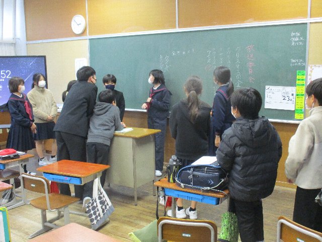 今日の6限目に委員会が行われ、それぞれの委員会が6年生を中心に活動に取り組んでいました。 上の写真は左から順に、放送委員がクリスマスに向けてどんな放送をするかを話し合う様子、福祉委員が一人暮らしのお年寄りに年賀状を書いている様子、保健委員がはみがきすごろくの紹介文を考えている様子です。他の委員会も学校のためにと熱心に活動していました。