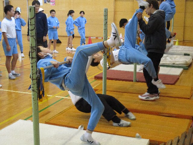 体育支援事業として外部講師の方に来ていただき、鉄棒を教えてもらいました。 まだ逆上がりができない子もいるので、できるようになるための練習方法を教えてもらったり、アドバイスをもらったりしました。今日1日ではなかなかできるようにはなりませんが、あと少しでできそうという子は多く見られました。なんとか小学生のうちにできるようになるといいですね。