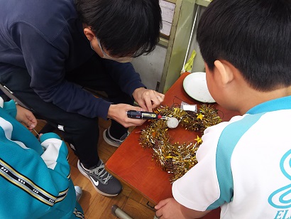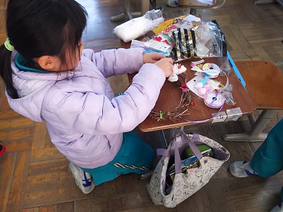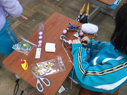 生活科の学習で、1年生がリースの飾りつけをしました(^^)/