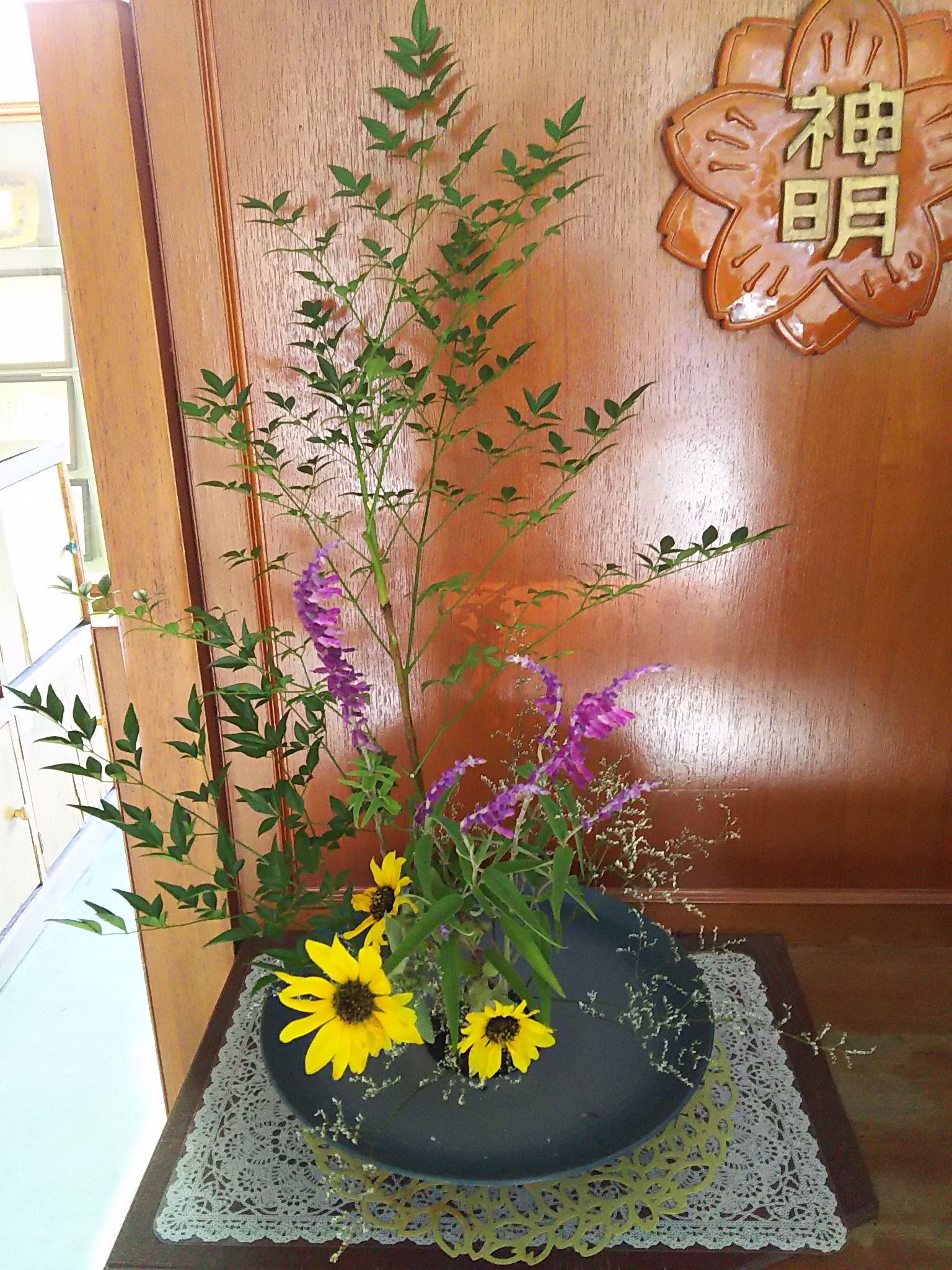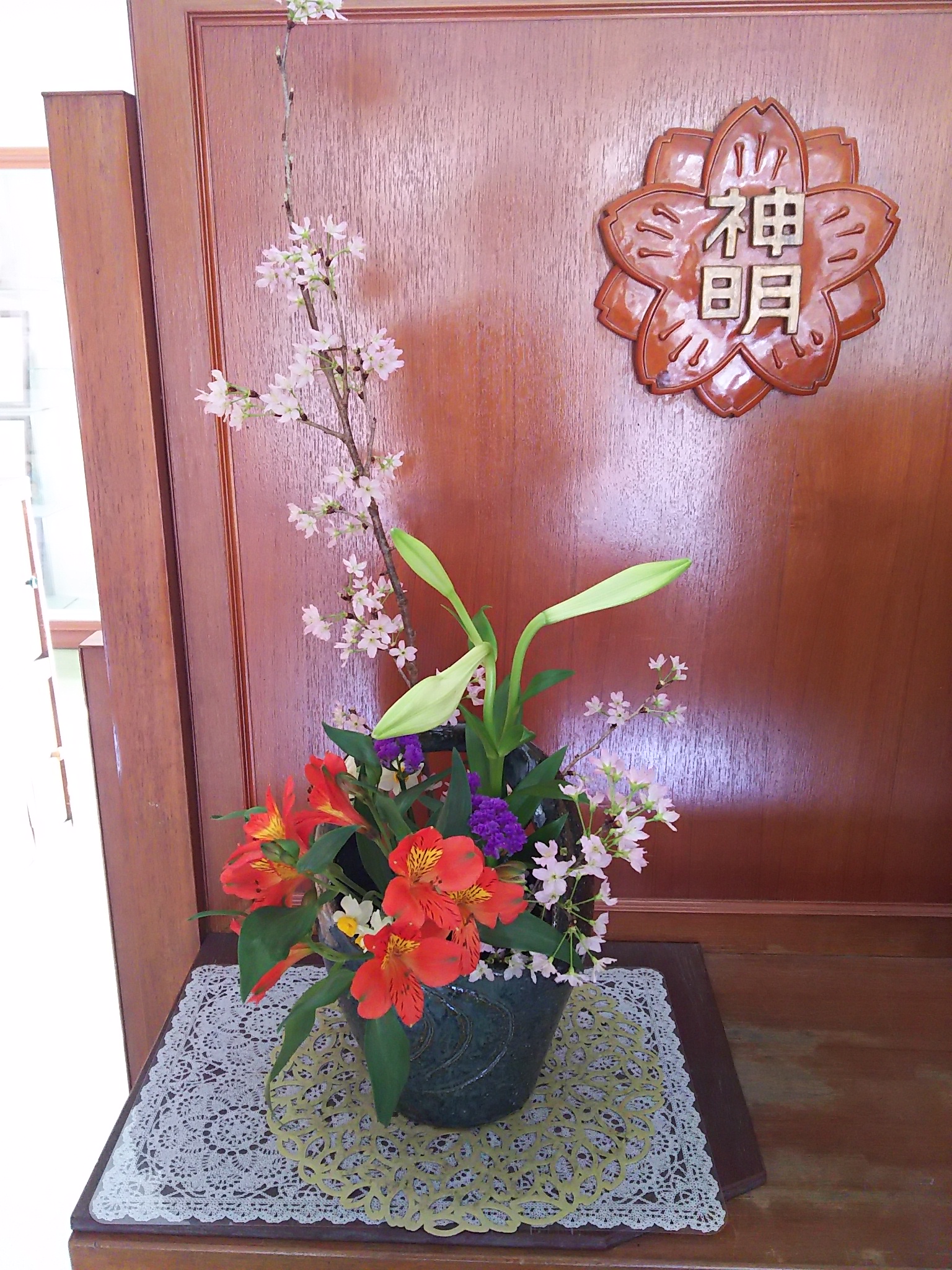 地域のボランティアの方が生けてくださったお花です。職員玄関に飾られていますので、お越しの際はご覧ください。