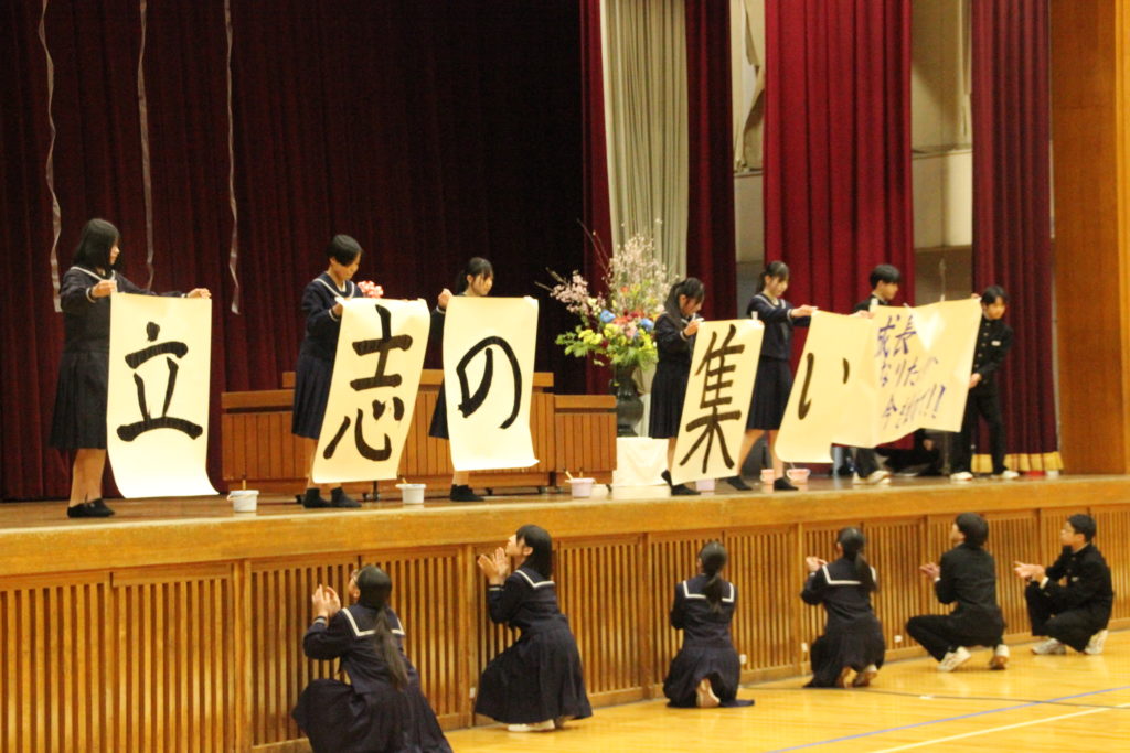 3月17日(火)、2年生が「立志の集い」を実施しました。多くの保護者の方も見守る中で、実行委員の生徒が進行し、「学年五訓」の発表、一人一人がステージに立つ「私の決意表明」、最後には学年合唱を体育館に響かせる感動的な式となりました。