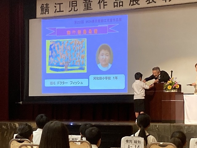 鯖江市嚮陽会館にて、表彰式と展示会が行われました。実行委員長賞をはじめとして、5人の「かわだっ子」の作品が展示されました。