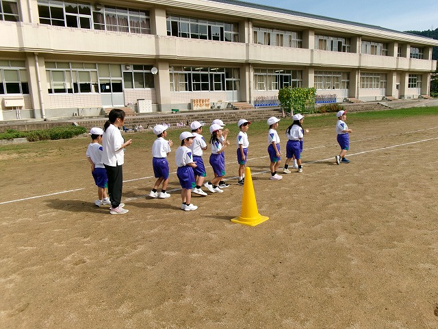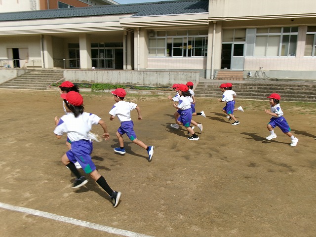 (1年生)校庭を4周(800m)走りました。