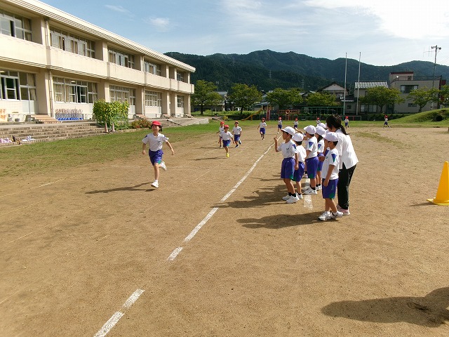 ペアを作り、赤と白の2つに分かれて走ります。