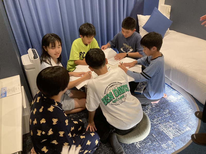 そろぞれの部屋に入って、しおりの記入、荷物の整理、入浴等を行いました。