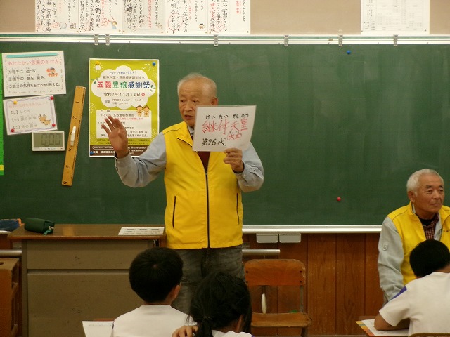 ふるさと学習の一環として、「鯖江継体の会」の方々が、継体天皇についてのお話をしてくださいました。