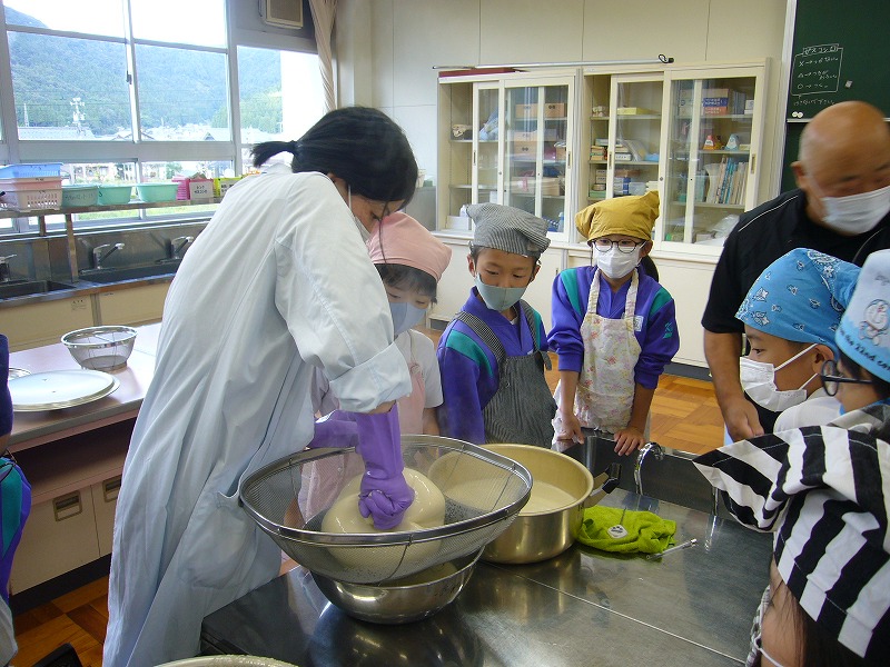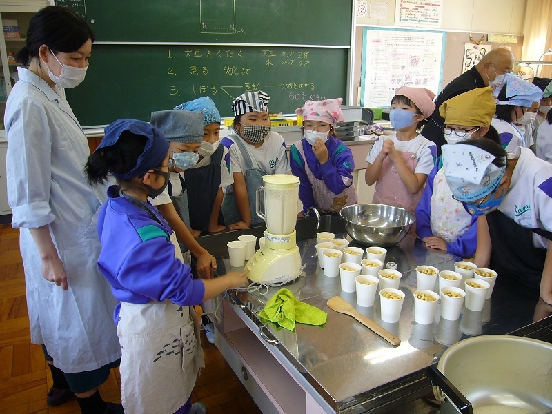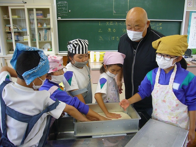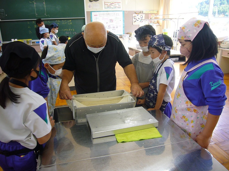 講師の方をお招きして、3年生が「豆腐づくり」に挑戦しました。
