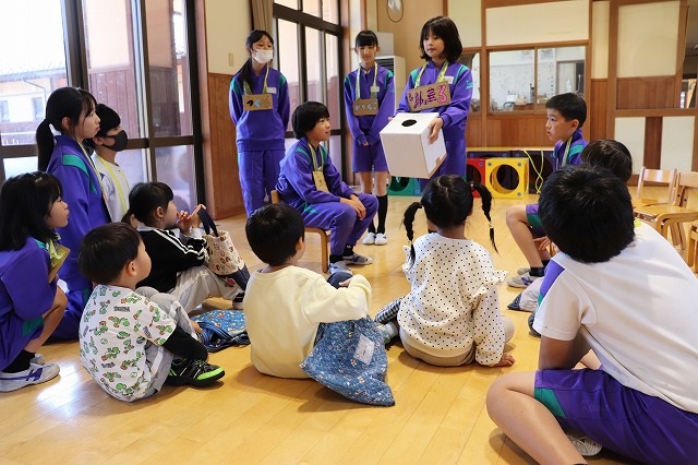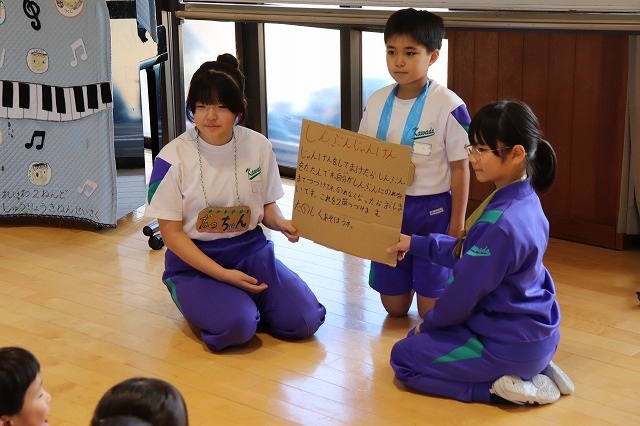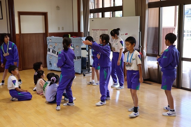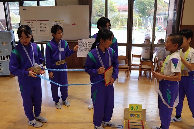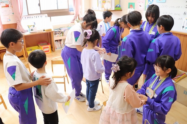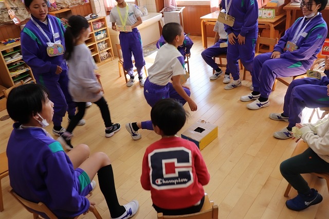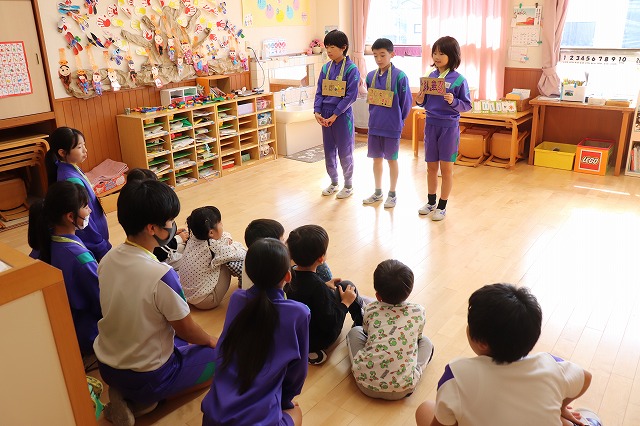 園児のみなさんは楽しく遊んでくれました。5年生の児童も園児とふれあうことで、お世話をすることの楽しさや喜びを感じることができました。