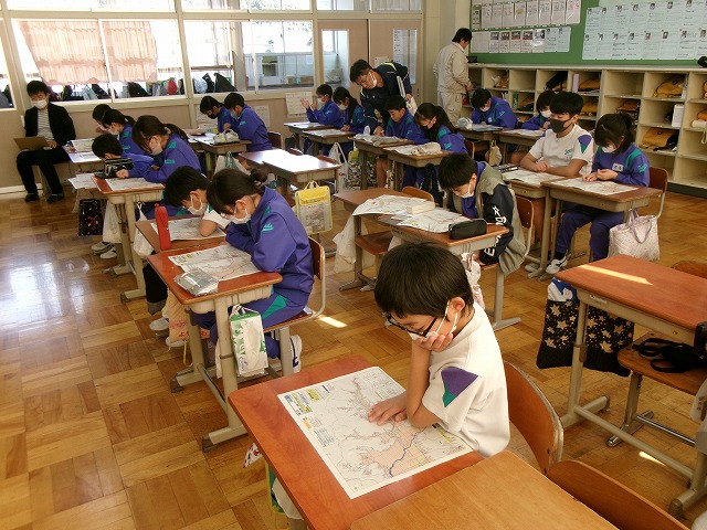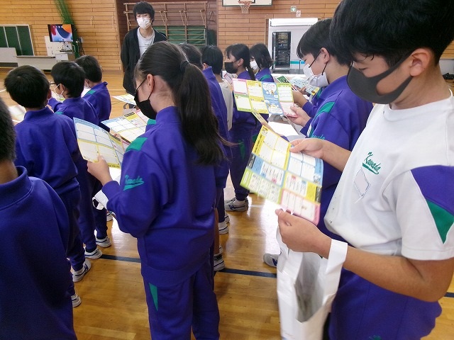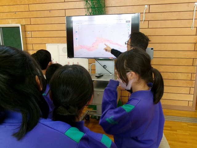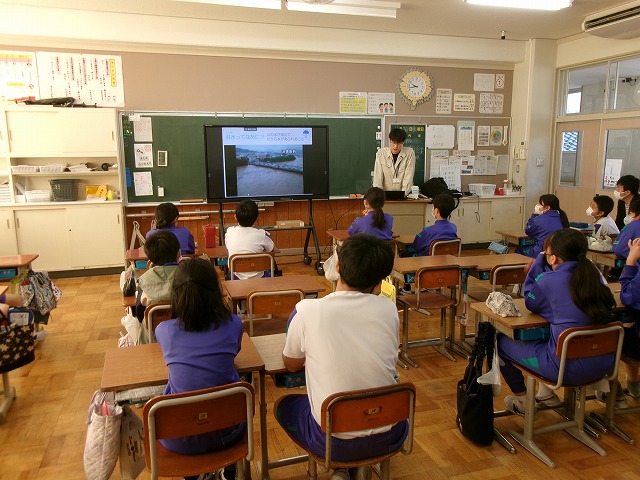 1時間目は、県砂防防災課・河川課の方から、大雨等による河川の氾濫、土砂崩れ等に対する対策についての話をお聞きしました。