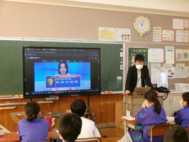 次に、NHKのアナウンサーの方から「地震」についてのお話をお聞きしました。