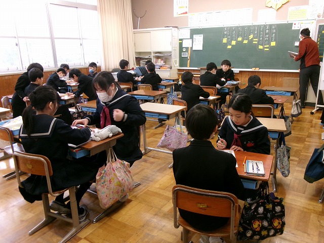 始業式後は、各学級で、3学期の目標や宿題提出、係決めなどを行いました。