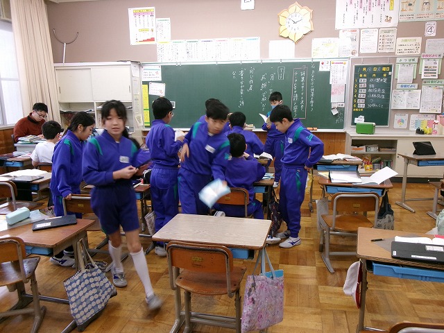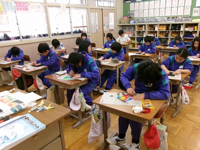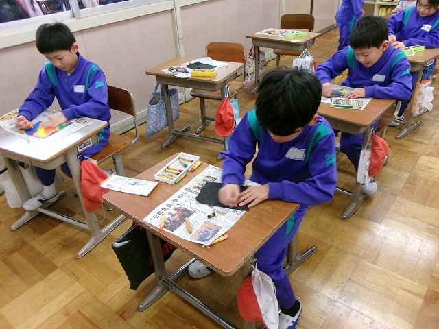 6年生:毎年恒例の「安全ボーイ・ガール」の作成にとりかかりました。