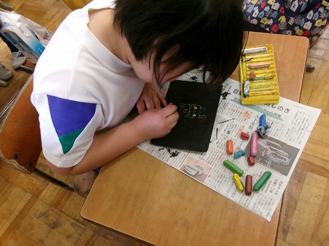 上から黒のクレヨンで塗りつぶします