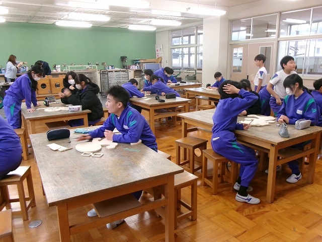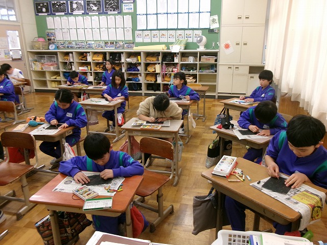 3年生:(図工)独特な表現方法の絵に取り組んでいます。