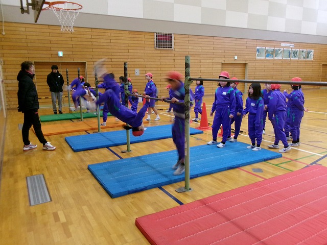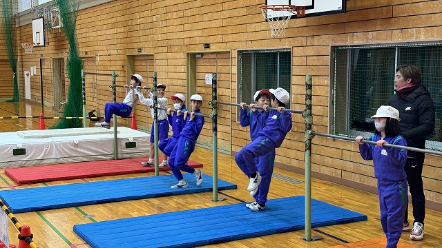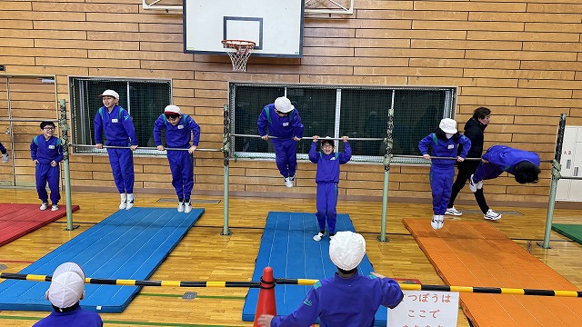 講師の方をお招きして、鉄棒を指導していただきました。各自が自分の技のレベルアップに挑戦していました。