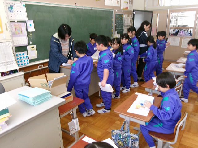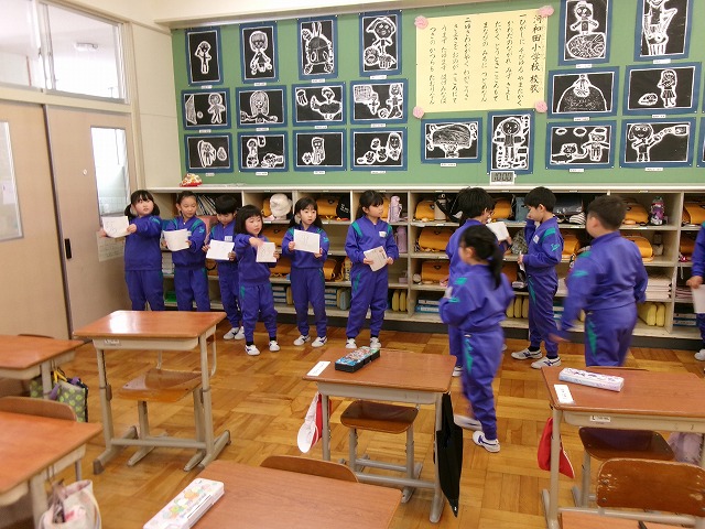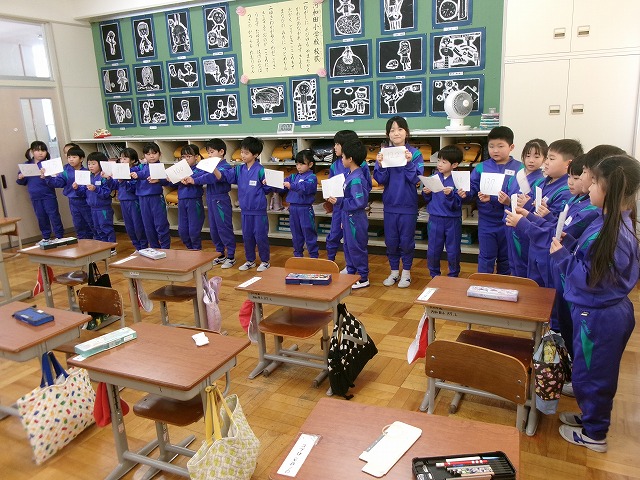 (算数)「100より大きい数」:自分で決めた数を紙に書き、小さい順に並べます。