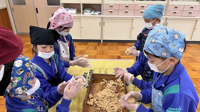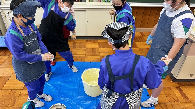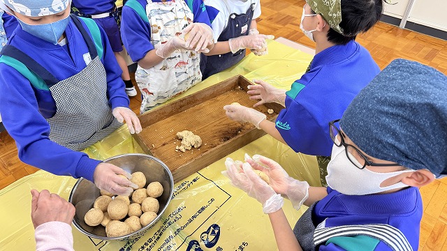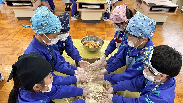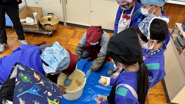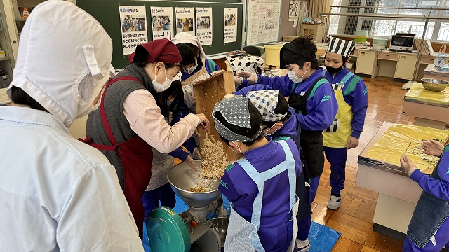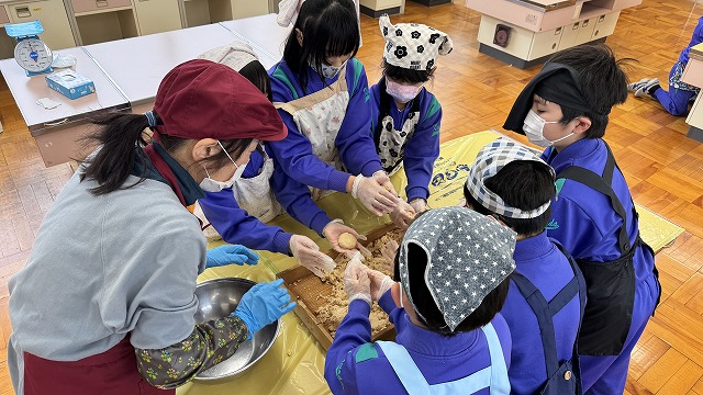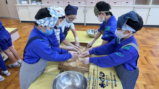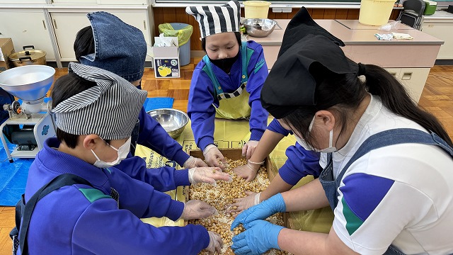 講師の方をお招きして、4年生が味噌造りに取り組みました。