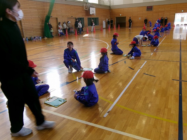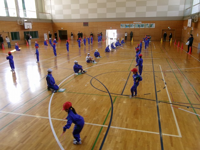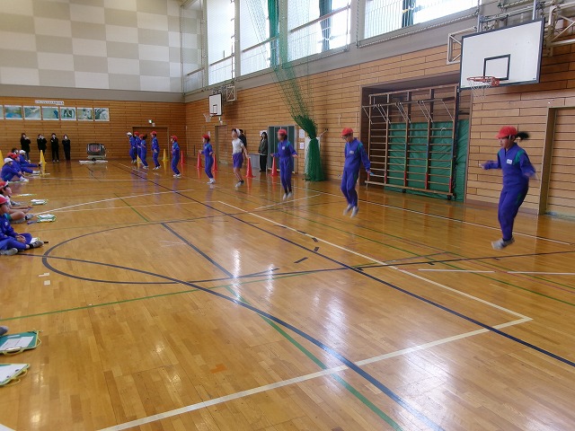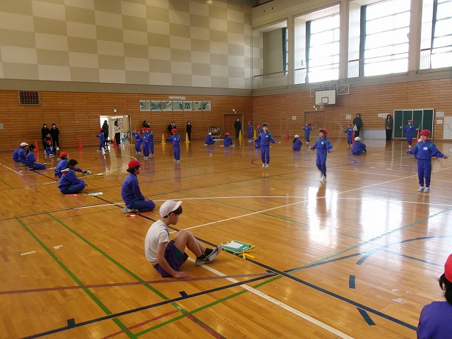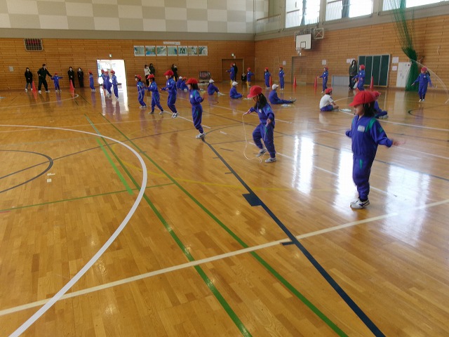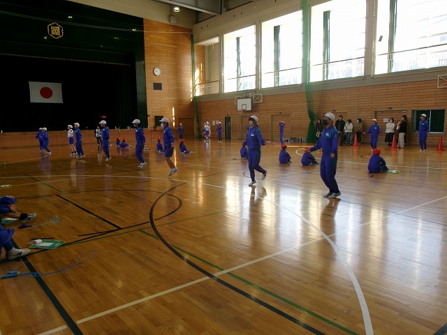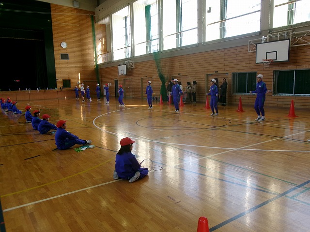 これまでの体育の授業やステップアップタイムに練習を重ねてきた成果を発揮する日が来ました。上級生と下級生の学年の合同で行います。上級生は下級生の跳んだ回数を数えてあげるなどのサポートをしました。