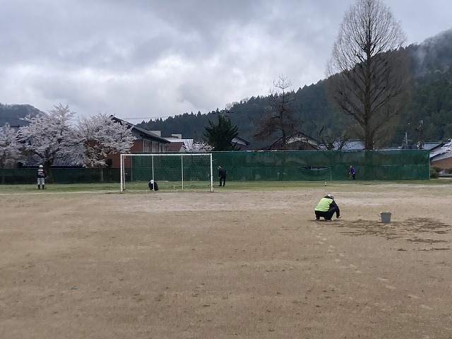 春になり草が伸び始めていましたが、校庭が見違えるほど美しくなりました。