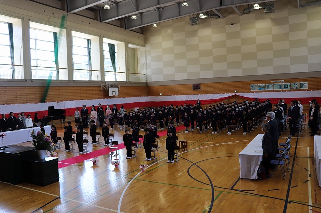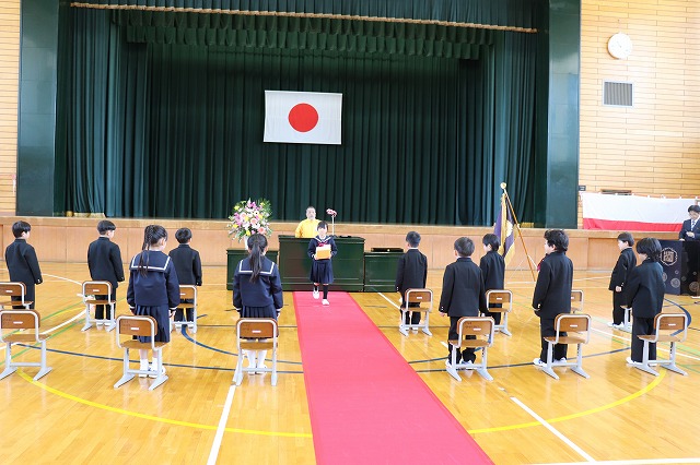 春爛漫の陽気の下、新1年生15人が元気に登校し、入学式が行われました。