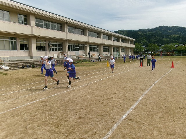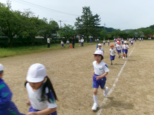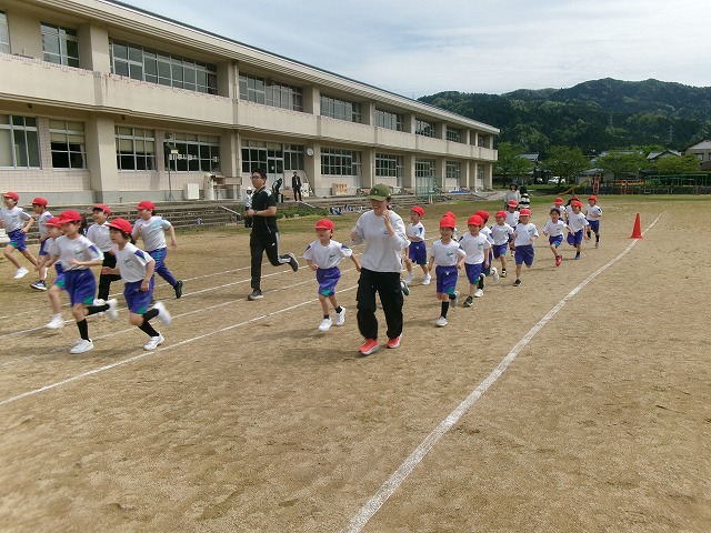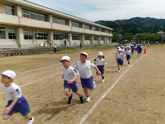 水・金曜日の「ふれあいタイム」に全校で運動に取り組んでいます。今年度初めての「プラスワンタイム」が行われました。1学期は「マラソンタイム」として5分間走に取り組みます。