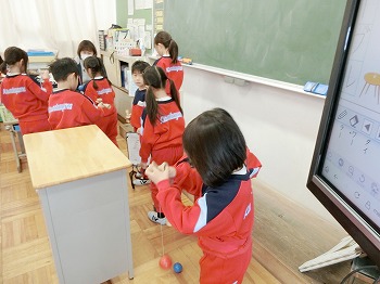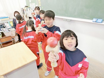 今日の休み時間の様子です。けん玉の練習をしていました。まわしとめけんやもしかめに挑戦し、うまくできている子が多くて驚きました。私(校長)への「できた」アピールが凄かったです!あちこちで歓声が上がり、とてもにぎやかで微笑ましかったです!もっともっと練習して、技を増やしていきましょう!