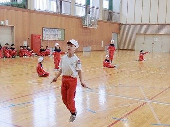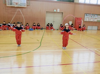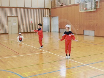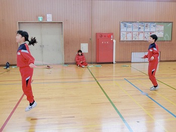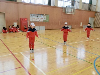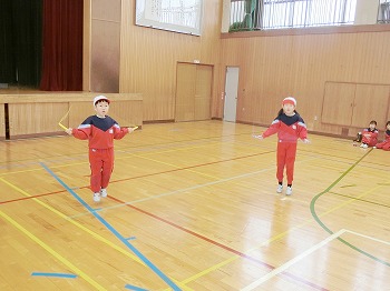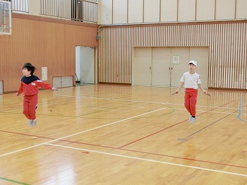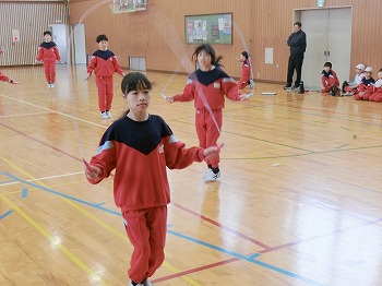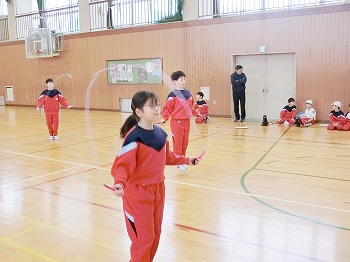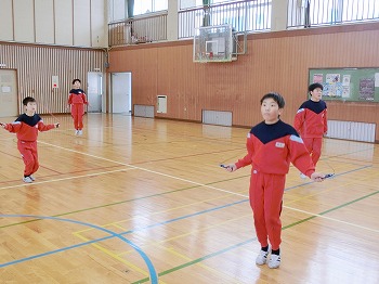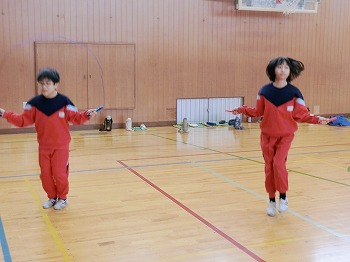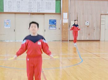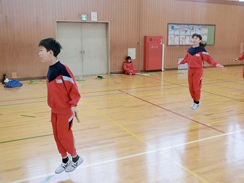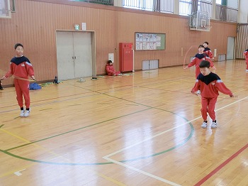 今日、2・5年生が体育でなわとび大会に向けた合同練習をしていました。各学年の種目とびの後、2年生が3分間、5年生が6分間の時間跳びをしていました。最後まで跳べた人、おめでとう!本番でも頑張ってください。あと1週間、しっかり体力をつけて跳び切れるようがんばりましょう!