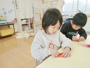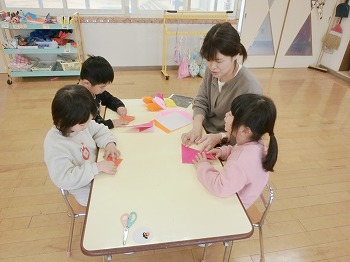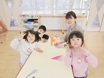 今日の朝活動の様子です。もも組さんは、お部屋の掃除と片付けをしていました。1年間お世話になりましたね!きれいにしてくれてありがとう!ばら組さんは、みんなで折り紙を製作していました!ばら組さんは、来年度はいよいよきく組ですね!北中山幼稚園のリーダーとしてしっかり頑張ってくださいね!(私(園長)からのブログは今日が最後になります。3年間ブログを見ていただき、大変ありがとうございました!)